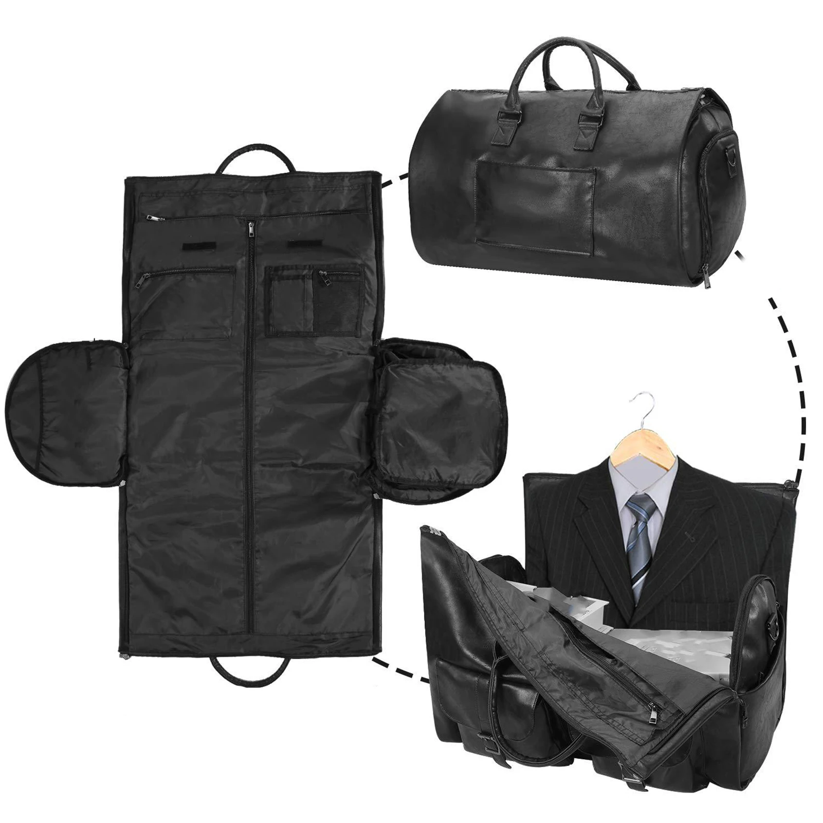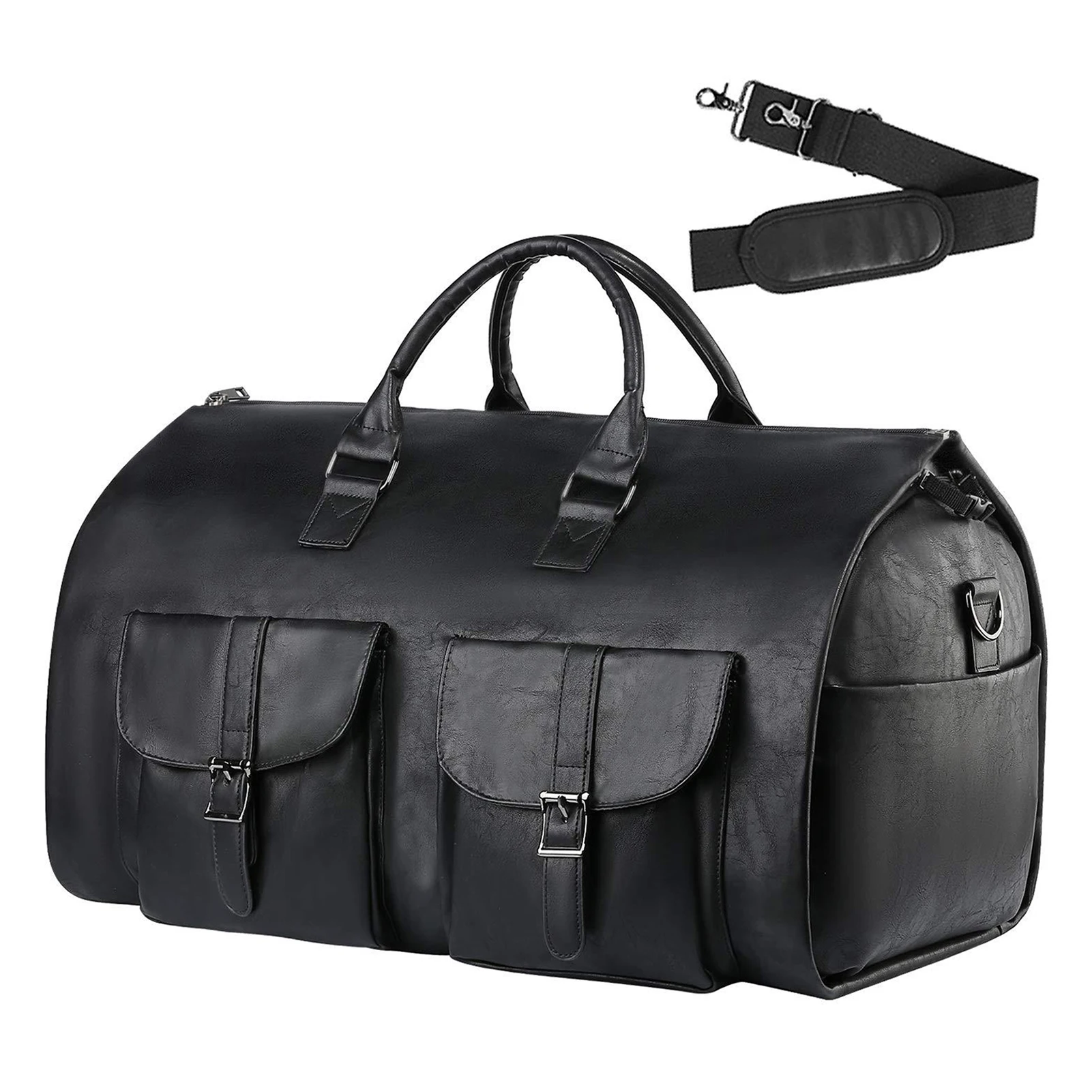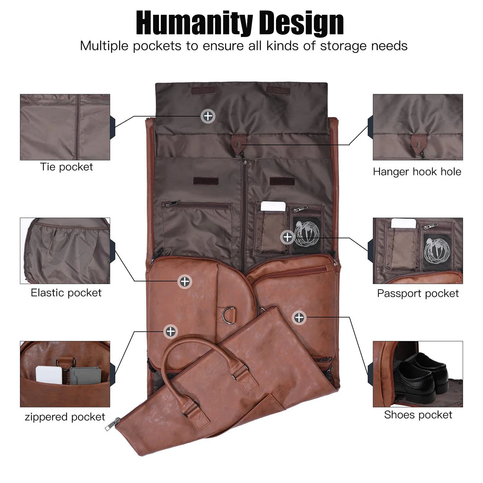 MULTIFUNCTIONAL BAG: You can hang clothes pockets + various inside pockets (for ties, umbrellas, wallets, mobile phones, etc.) + large-capacity travel pockets, the leather garment bag has a zip pocket on the side for electronic devices or travelling essentials.